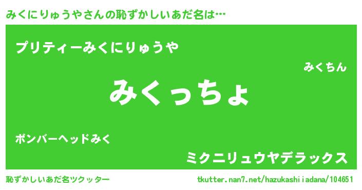 | 意味不明あだ名 | 『みくにりゅうやフォーエバー』 |