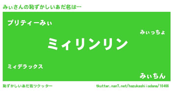 | ヘコむあだ名 | 『みぃを』『みぃっふぃ~』 |