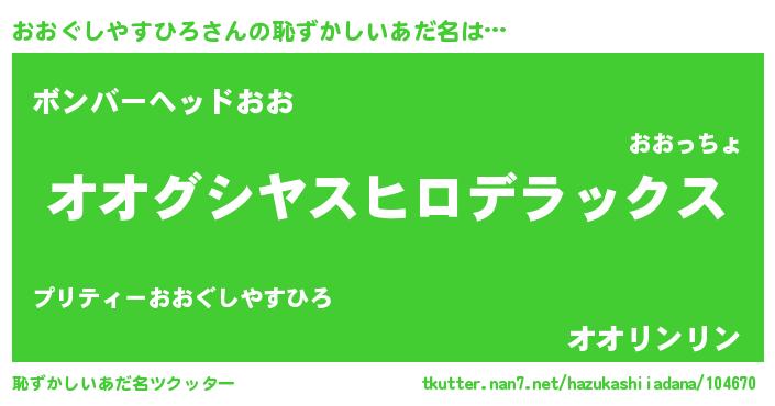 | 意味不明あだ名 | 『自称おおぐしやすひろ』 |