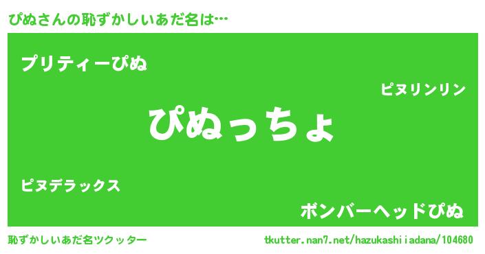 | ヒーロー風カッコイイあだ名 | 『ウルトラぴぬマン』『仮面ピヌダー』 |