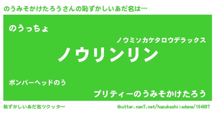 | 欧米人風あだ名 | 『ウサインのうみそかけたろう』 |