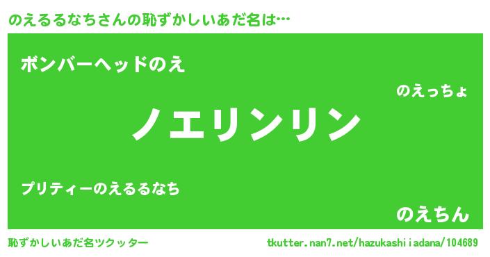 | 男性向けラノベタイトル風あだ名 | 『のえるるなちの嫁は女の子じゃないと思った?』 |