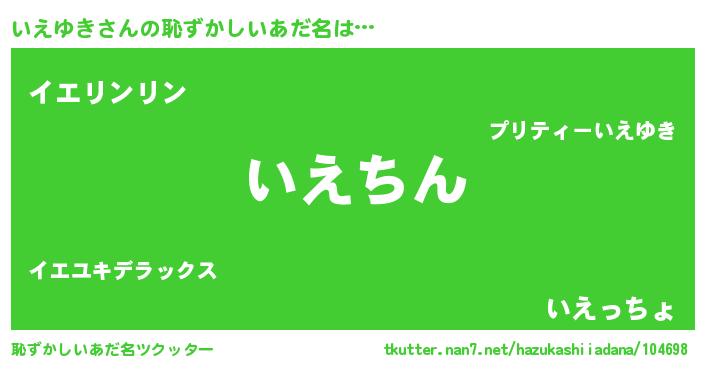 | 意味不明あだ名 | 『永久保存いえゆき』『ペロリンいえゆき』 |