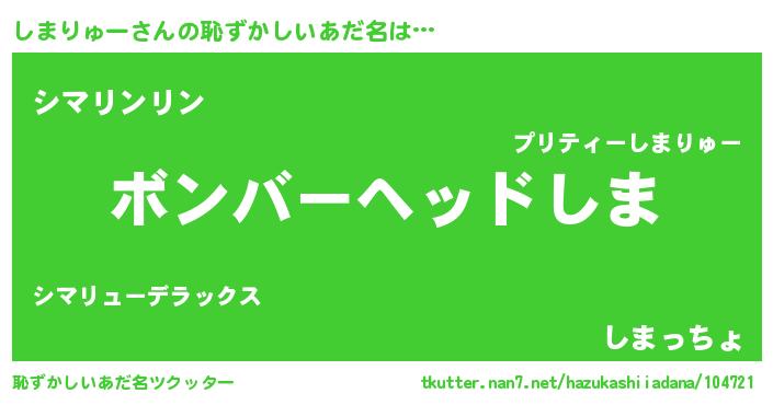 | ヒーロー風カッコイイあだ名 | 『友情の使者しまりゅー』『天弓騎士シマ』 |
