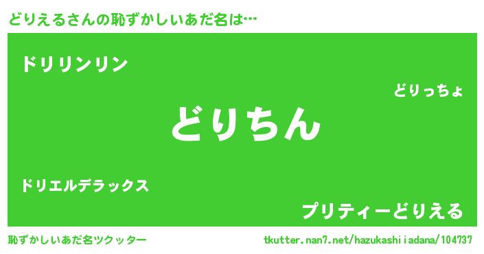 | 意味不明あだ名 | 『永久保存どりえる』『ペロリンどりえる』 |