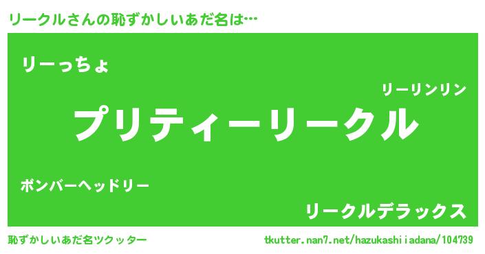 | ヒーロー風カッコイイあだ名 | 『スーパーリークル』『究極戦士リークル』 |