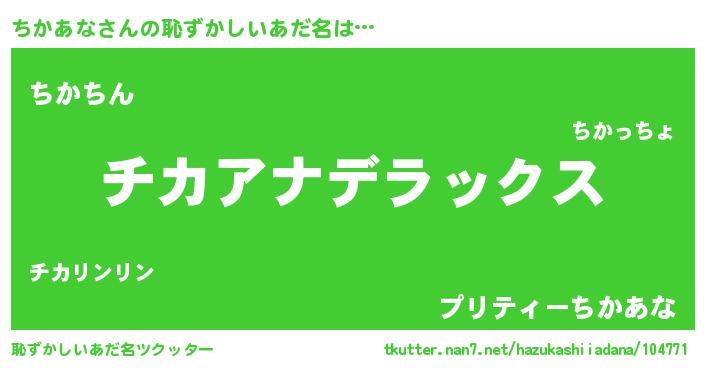 | 意味不明あだ名 | 『自称ちかあな』『永久保存ちかあな』 |