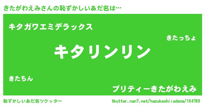 | 意味不明あだ名 | 『とにかく怪しいきたがわえみ』 |