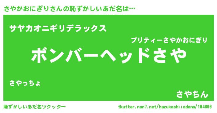 | 男性向けラノベタイトル風あだ名 | 『ノーゲーム・ノーサヤカオニギリ』 |