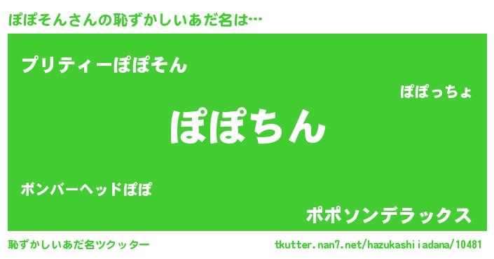 | ヘコむあだ名 | 『ぽぽそん(遠い目)』『ぽぽっふぃ~』 |
