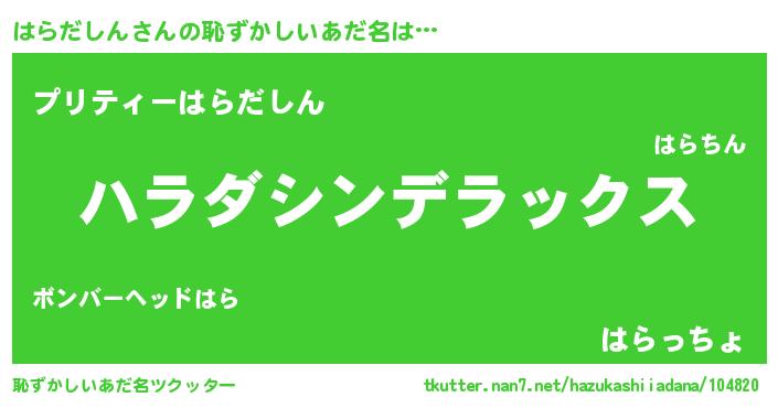 | 意味不明あだ名 | 『ニラ科はらだしん属』『自称はらだしん』 |