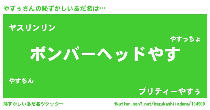 | 欧米人風あだ名 | 『ダニエルやすぅ』『ウサインやすぅ』 |