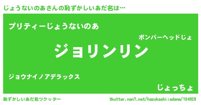 | 意味不明あだ名 | 『とにかく怪しいじょうないのあ』 |
