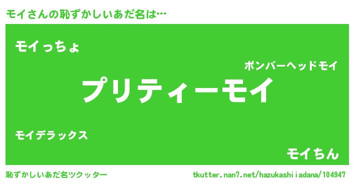 | 男性向けラノベタイトル風あだ名 | 『モイの憂鬱』 |