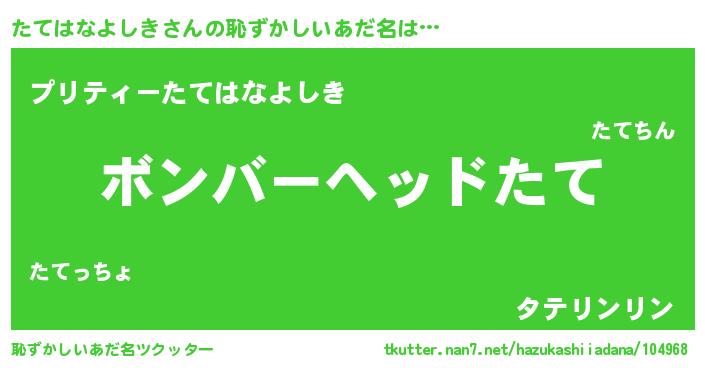 | 男性向けラノベタイトル風あだ名 | 『ノーゲーム・ノータテハナヨシキ』 |