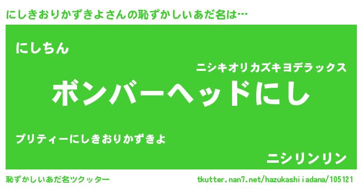 | ヘコむあだ名 | 『にしきおりかずきよ(笑)』『にし太郎』 |