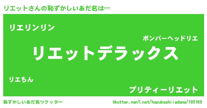 | ヒーロー風カッコイイあだ名 | 『仮面リエダー』『究極戦士リエット』 |
