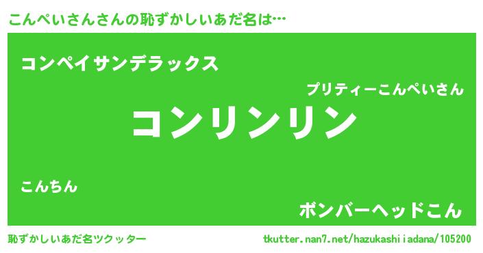 | 意味不明あだ名 | 『とにかく怪しいこんぺいさん』 |