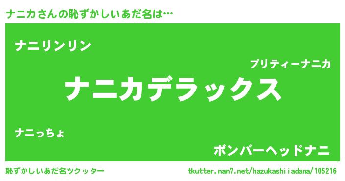 | 可愛いあだ名 | 『ナニうちぇる』『ナっニぃー』 |