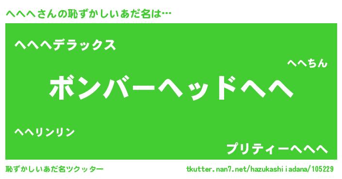 | ヘコむあだ名 | 『へへにー』『へへへ(遠い目)』 |