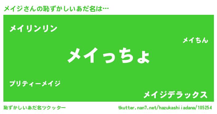 | ヘコむあだ名 | 『豆乳』『メイっぺ』『メイジ(笑)』 |