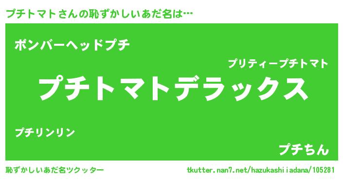 | 意味不明あだ名 | 『自称プチトマト』『永久保存プチトマト』 |
