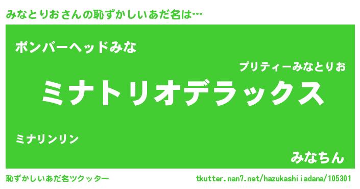 | ヘコむあだ名 | 『みなとりお(笑)』『みなふぇ~』 |