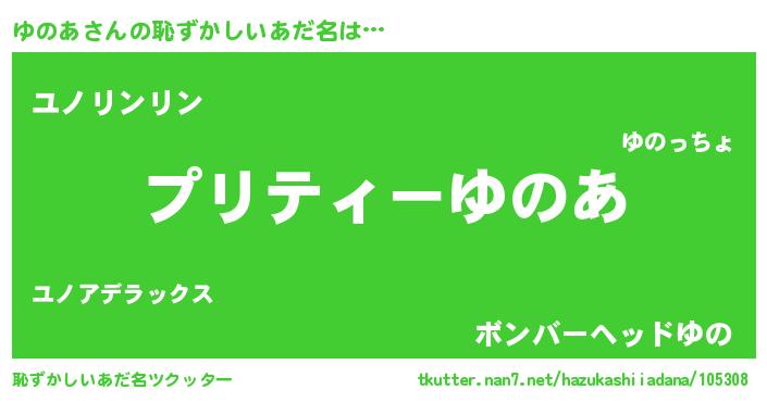 | 意味不明あだ名 | 『めかぶ科ゆのあ属』『ペロリンゆのあ』 |