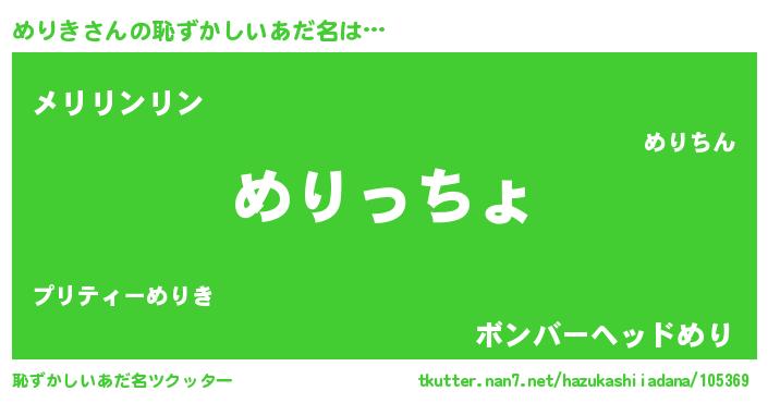 | 意味不明あだ名 | 『めりきフォーエバー』『永久保存めりき』 |