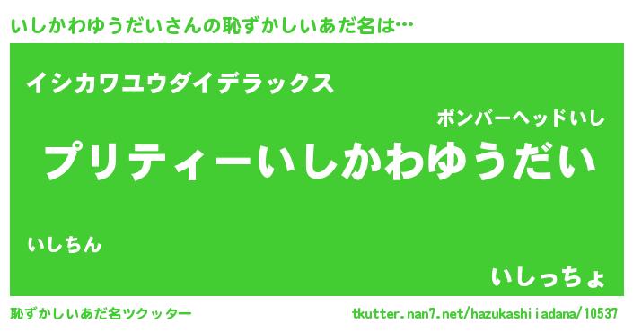 | ヘコむあだ名 | 『いしにー』『なまこ酢』『いしを』 |
