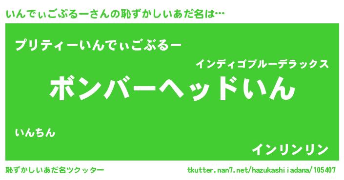 | 男性向けラノベタイトル風あだ名 | 『ノーゲーム・ノーインディゴブルー』 |