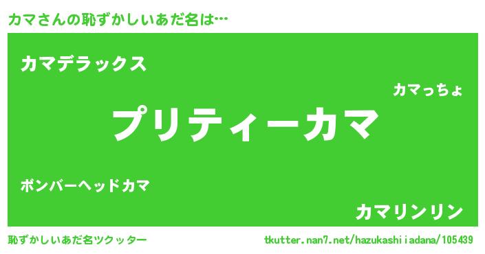 | 男性向けラノベタイトル風あだ名 | 『カマアートオンライン』『緋弾のカマ』 |