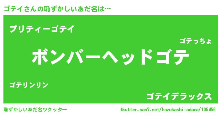| ヒーロー風カッコイイあだ名 | 『友情の使者ゴテイ』『仮面ゴテダー』 |
