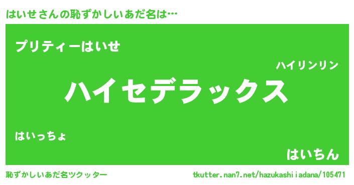 | ヘコむあだ名 | 『はいっふぃ~』『はいせ(小並感)』 |