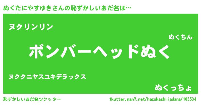 | ヘコむあだ名 | 『ぬくお』『豆乳』『ぬくふぇ~』 |