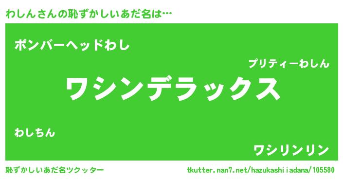 | ヒーロー風カッコイイあだ名 | 『ウルトラ戦士ワシン』『愛の使者わしん』 |