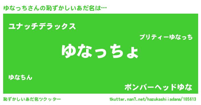| 意味不明あだ名 | 『なめこ科ゆなっち属』『自称ゆなっち』 |