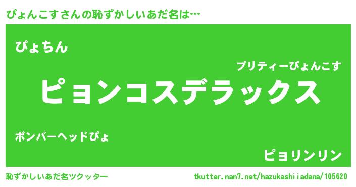 | 男性向けラノベタイトル風あだ名 | 『ピョンコススレイヤー』 |