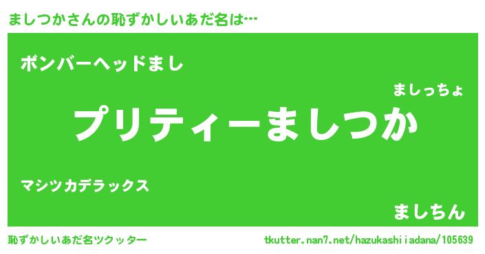 | ヘコむあだ名 | 『ましっふぃ~』『ましつか(爆)』 |