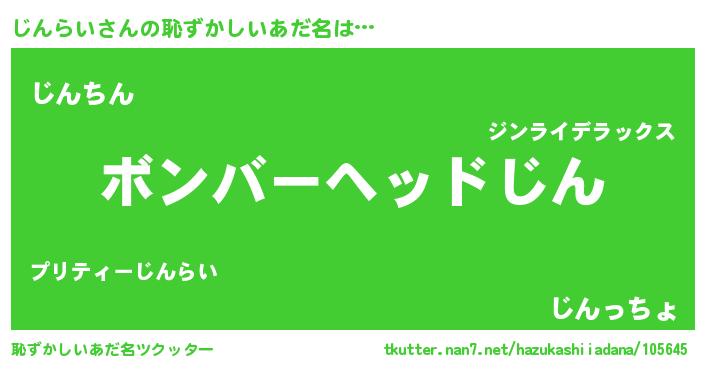 | 欧米人風あだ名 | 『ダニエルじんらい』 |