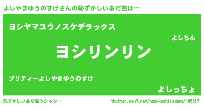 | 男性向けラノベタイトル風あだ名 | 『ダンジョンによしやまゆうのすけを求めるのは間違っているだろうか』 |