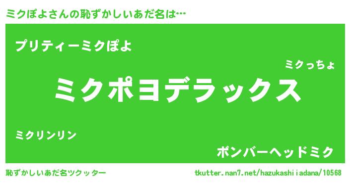 | 欧米人風あだ名 | 『ケンブリッジミクぽよ』 |
