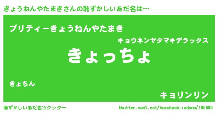 | 欧米人風あだ名 | 『きょうねんやたまきクリステル』 |