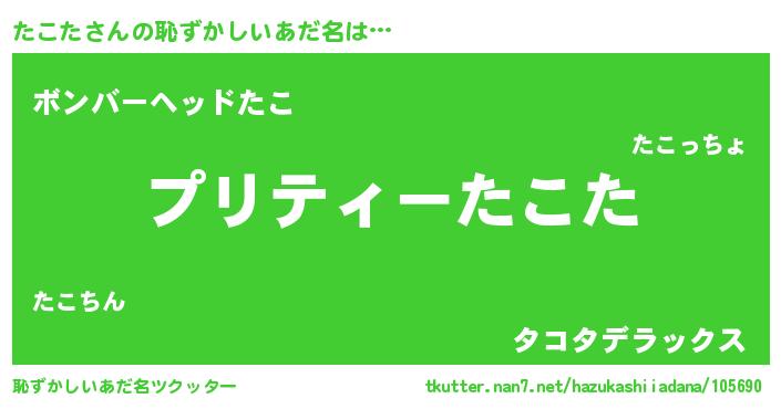 | 女子向けラノベタイトル風あだ名 | 『たこた姫と円卓の騎士』 |