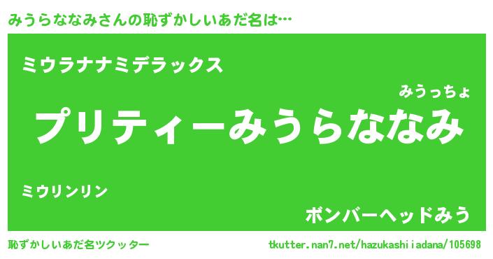 | ヒーロー風カッコイイあだ名 | 『スーパーミウラナナミ』『仮面ミウダー』 |