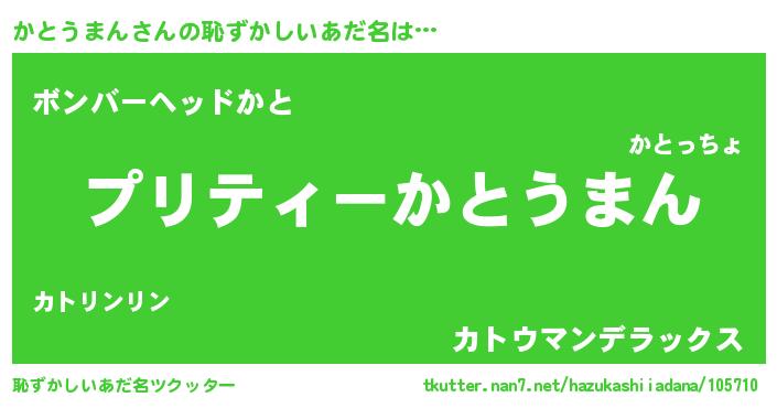 | 男性向けラノベタイトル風あだ名 | 『かとうまんの憂鬱』 |