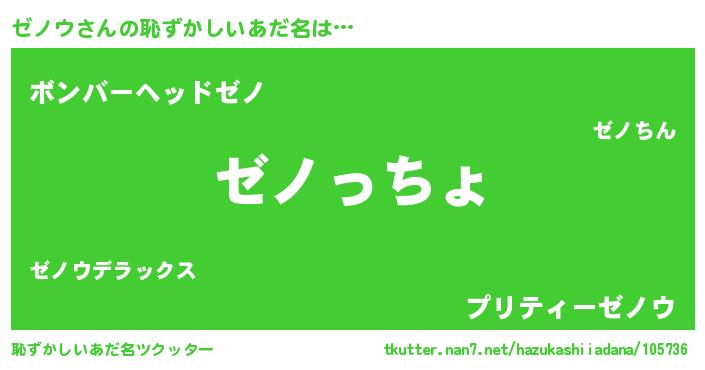 | ヘコむあだ名 | 『つくし』『ゼノにゅー』『ゼノを』 |