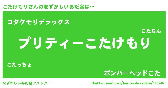 | 男性向けラノベタイトル風あだ名 | 『こたけもりの憂鬱』 |