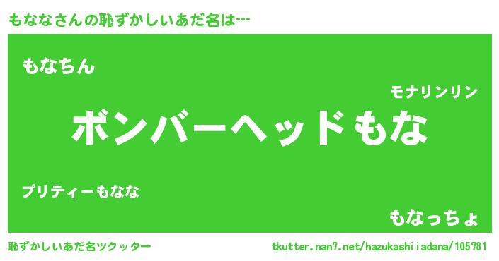 | ヘコむあだ名 | 『もなな(小並感)』『牛乳』『もなを』 |