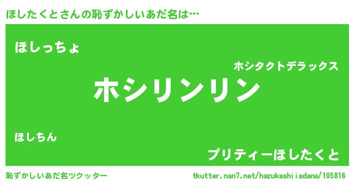 | ポケモン風あだ名 | 『ヒホシタクト』『メロホッシ』 |